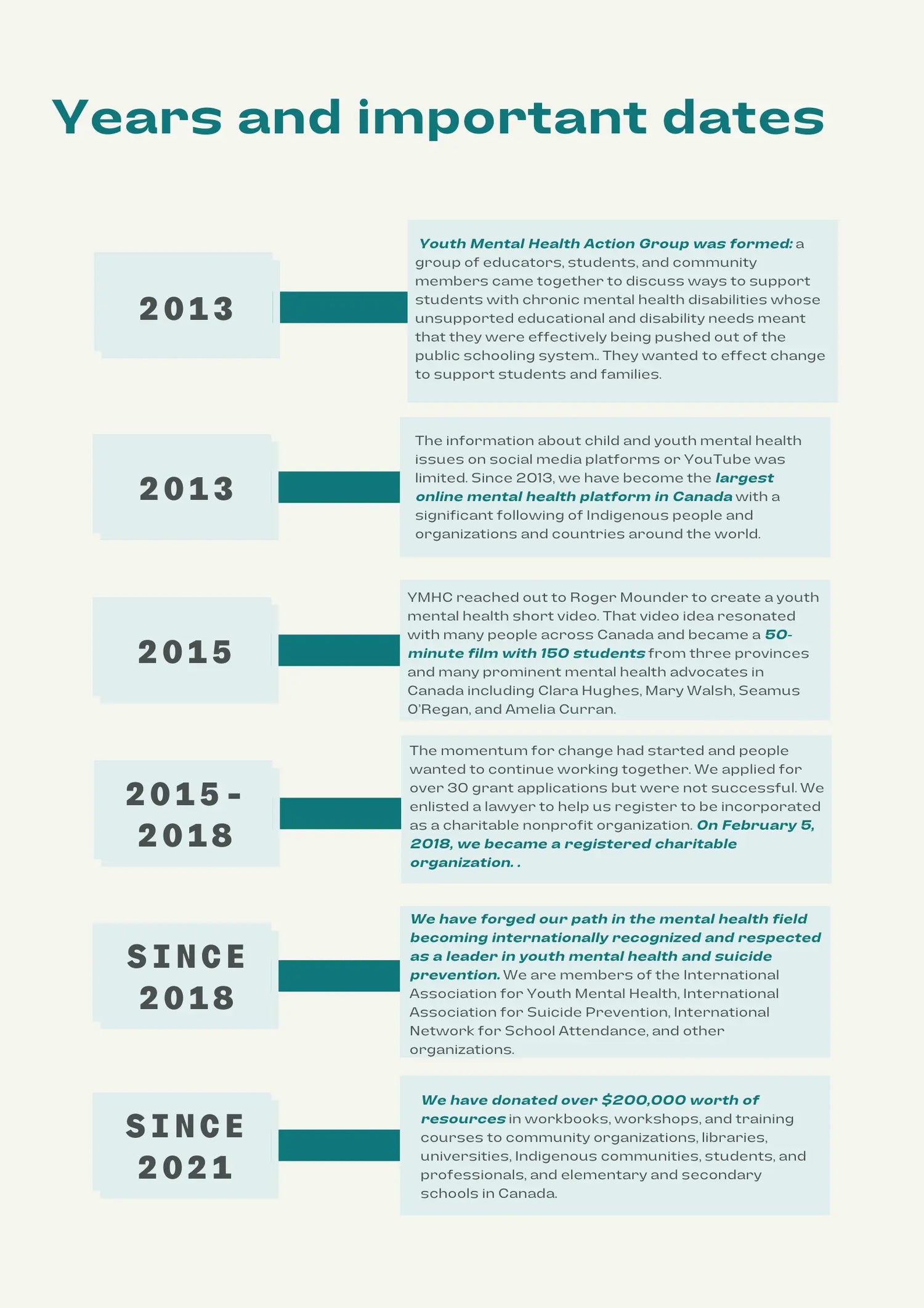 Since 2013, here are YMHC’s successes that have made us internationally recognized and respected in youth mental health and suicide prevention: